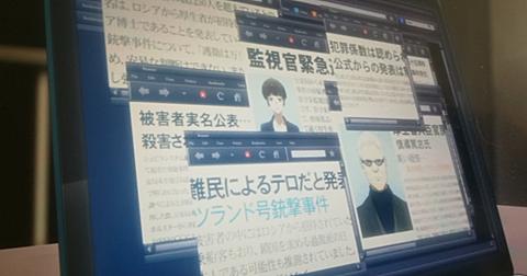 サイコパス第2話で、慎導のPC画面には、乗客船の襲撃事件や、禾生局長の殺害事件や、朱ちゃん緊急逮捕の事件、慎導篤志の黒幕の疑いの記事などいろいろな情報がありましたが、それを一度整理して、一連の事件を考察したいと思います。 PC画面の文章 記事左上 左真ん中 左下 中央 右上 右下 右上端 考察 乗客船襲撃事件 禾生局長殺害事件、常守朱緊急逮捕 慎導篤志が黒幕説 一連の事件の真相は PC画面の文章 記事左上 死亡した乗客の数は50人を超えているとの...名は、ロシアから厚生省が招待し...ア博士であることを発表している...銃撃事件について、「護衛は万全...め、安易な判断はできない。また...…