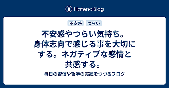 悩み事や心配事で不安になったり、つらい気持ちになったり、感情はネガティブになることが多く、それをどう対処して、どのように前に進んでいくか、本当に難しい問題と思います。どうにかしようと色々と頭で考えますが、気が付いたらいつもと同じような事を考えて、堂々巡りになって、上手く前に進めません。 人間が出来る事というのは、考える事ではなく、というか、考える事の前に、「感じる」事なのではないだろうかと思ったりします。 意識的に考えるより、その前に、無意識的に感じるという事に注目するという事です。 人間は本来的に動物で、身体が中心であるという事を考えると、身体の状態がどのような状態で、身体の状態をどのように…