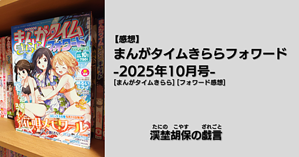 『スローループ』のCOMIC FUZへの移籍によって現状『球詠』の一本のみとなっているいまのきららフォワードを支える柱であるが、毎度口煩くしつこく言ってるもののはやりこれからの次世代を担う新たな柱が、それに成り得る作品に何かしらの大きな動きが来る事を期待したいところではあるが、発行日のうえでは晩夏から初秋へと移り行く中で年内中にそういう動きはあるか否か。 とはいってもいち不肖読者の力ではどうにもなる訳が無いんで、何時も通り掲載作品について彼是と語っていきます。 ※ネタバレを多分に含むので御注意下さい ⇩過去の感想記事⇩ w811b8y198stx8.hatenablog.com
