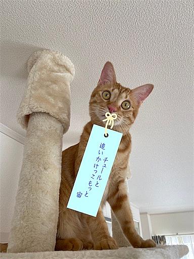 はるねこです。 毎日雨降りです。 降ると困る人 降らないと困る人 どうか神様良い塩梅で お願いします。 前回のブログに たくさんのコメント ありがとうございました。 宙と一緒にいつまでも! 明日は七夕です。 子どもが小さかった時は 短冊に願い事書いて 笹にかざりましたねぇ。 にゃにゃにゃ工務店さん (id:JuneNNN)から 短冊を自由に 使っていいですよ!と ブログにありました。 juneoekaki.hatenablog.jp 飼主試行錯誤で・・ 早速、宙に書かせました。 宙はやはり空色の短冊を選びました。 やっぱりチュールか! そして追いかけっこ・・ (≧∀≦) 私は体力ないからなぁ。…