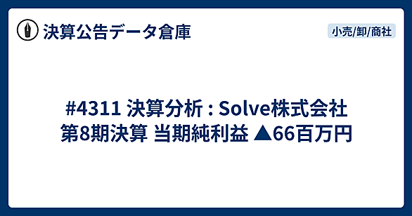 リモートワークの普及やオフィスカジュアルの浸透により、ビジネスシーンにおける服装のあり方は大きく変化しました。ネクタイを締め、かっちりとしたスーツを着る画一的なスタイルから、個々の働き方や価値観に合わせた、より自由で多様な装いが求められる時代になっています。このような変化の中で、「成功する装い」をコンセプトに掲げ、オンラインでのカスタムオーダーという手法で新しいビジネスウェアを提案する企業があります。それがSolve株式会社です。 今回は、D2C(Direct to Consumer)アパレルブランドとして独自の挑戦を続けるSolve株式会社の決算を読み解き、そのビジネスモデルの可能性と、直面…