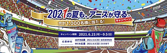アース製薬2021の夏も、アースが守る。キャンペーン 賞品 [クイズに答えて当たる!]自宅をゴージャスに満喫セットパナソニックホームシアター&現金10万円/20名 [お買い上げで当たる!]<1,000円(税込)以上お買い上げ>VISAギフトカード1万円分/150名 <500円(税込)以上お買い上げ>豪華スイーツギフトカタログ5,000円分/300名 <Wチャンス賞>はずれた方の中から抽選でアース製薬商品ギフトセット+オリジナルピンバッジ/530名 応募方法 キャンペーン期間中にアース製薬対象商品を購入して、店頭の専用応募はがき、郵便はがき、又はキャンペーンサイトからダウンロードした応募用紙に名…