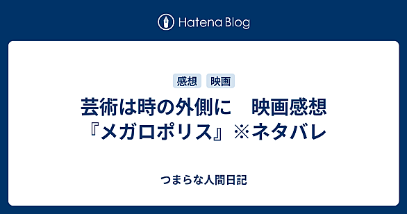 巨匠コッポラの新作「メガロポリス」を見ました。評判が散々なので心配していたのですが私は楽しませてもらいました。分かりにくい映画です。しかし、各場面はよく作りこまれているので強い力で引きこまれます。映画と想像の世界が混ざり合っているところは「君たちはどう生きるか」のようです。文明が進歩した結果、退廃の香りが強く漂うところはフェリーニの「甘い生活」ですね。途中で偽のエルビスが星条旗を持って歌うところはトランプへの皮肉でしょうか。しかも歌い終わって「アリガト」と日本語でお礼を言うのはなぜ。謎の部分は見た人が様々に解釈して楽しめばいいし、とにかく次々に繰り広げられる深遠な言葉と幻影。それは豊かな滋養に…