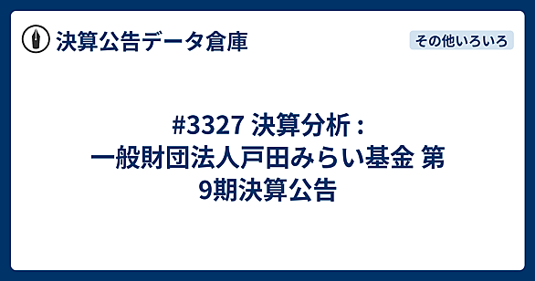 地域の未来を担う若者への教育支援と、デジタル時代に失われつつあるアナログ写真文化の継承。一見すると全く異なる二つの社会貢献活動を、半世紀近くにわたり静かに、しかし力強く支え続けている財団があります。その活動の原点は、福島県いわき市の炭鉱事業で財を成した一人の実業家の「社会への恩返し」の想いでした。 今回は、福島県を拠点に奨学金事業を、そして東京を拠点に写真文化事業を展開するという、ユニークな二つの顔を持つ「一般財団法人戸部記念財団」の決算を読み解きます。営利を目的としない一般財団法人の決算書から、その崇高な理念を支える、完璧とも言える財務の健全性に迫ります。 【決算ハイライト(第13期)】資産…