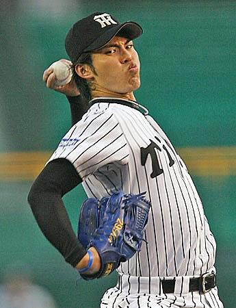 水戸商から1997年ドラフト2位で阪神タイガースに入団。3年間の育成を経て、2001年には規定投球回に到達。9勝13敗と負け越しではあるものの、防御率2.67と好成績を残す。2002年は開幕の読売ジャイアンツ戦で完投勝利、タイガースの開幕戦の連敗を11で止めるなど、エースとして活躍(14勝9敗)。 2003年は8月2日までの12連勝を含む20勝を挙げて最多勝・最優秀防御率のタイトルを獲得し、チームの優勝に貢献、MVPに輝く。2004年10月4日には広島カープ相手にノーヒットノーランを達成した。2004年オフにポスティングシステムによる大リーグ移籍を訴えたが、球団が認めず、2005年1月残留決定。