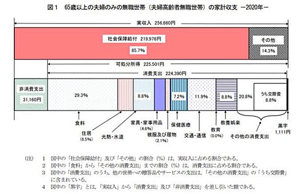 総務省が纏めている「家計調査報告 家計収支編」の2020年平均結果を見てみた。その中で65歳以上の夫婦のみの無職世帯の家計収支が記載されている。ちなみに下記の表です。 一般的なモデルケースで実収入は256,660円、消費支出224,390円、直接税や社会保険料などの非消費支出31,160円、黒字1,110円となっている。このケースの平均年齢が76.4歳となっていたので、我々の親世代か少し下の世代にに相当するはず。そうすると我々世代がもらえる年金としては平均するともっと少なくなると考えている。 老後の生活を考える時に、最初に自分が得るであろう年金と支出を把握して、ある程度の貯金あり、最低限の生活…