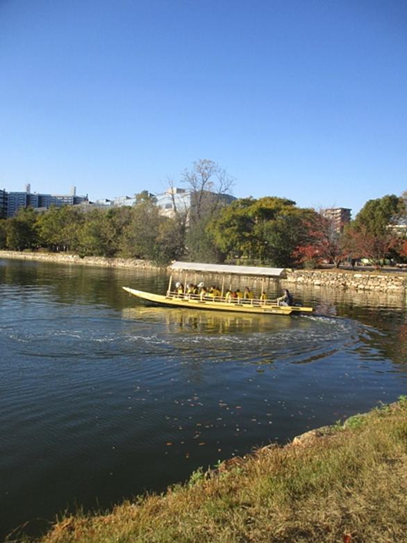 広島城の遊覧船が6年ぶりに復活しました。 お堀を回遊する屋形船です。 タイミングが合えば、堀の鯉や渡り鳥を見ることができるかもしれません。 乗る人は全員ライフジャケットを着用しています。 安全第一です。 以前は、二の丸の横から発着していましたが、現在は広島城の天守閣の西側に船着き場が設置されています。 お堀を回遊するスローな屋形船で、のんびり・まったり・・・なかなかオツなものです。