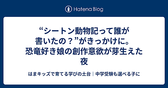 寝る前のちょっとした会話が、創作の芽に 寝る前、娘と布団に入って話していたときのこと。「シートン動物記は誰が書いたの?」と娘。 「シートンっていう人が書いたんだよ。ちなみに、フォーブル昆虫記はファーブルって人が書いたんだよ」と話すと、恐竜好きの娘が「じゃあ、なんとか恐竜記はないの?」と聞いてきました。「うーん、聞いたことないなぁ」と返すと、少し間を置いてからこう言いました。「じゃあ、〇〇(娘の名前)恐竜記書こうかな!」まだ実際には書いていないけれど、その一言に、私は娘の“創作意欲”と“学びの芽”を感じました。 親ができる、ちょっとした声かけ • 「それ、面白そう!どんな恐竜が出てくるの?」• …