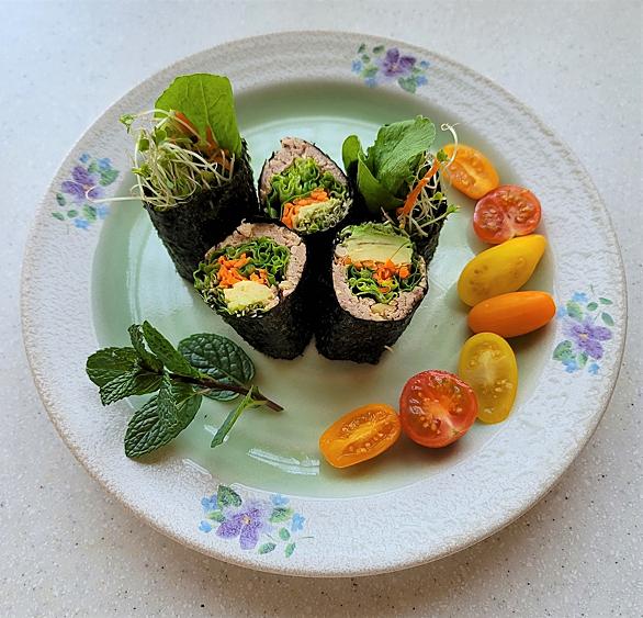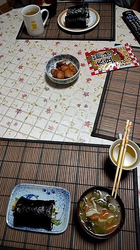 恵方巻の中身は、七福神にちなんで七種がよいと言われるが、特に定義がないという説も。かんぴょう、キュウリ、シイタケ、卵焼、ウナギ(またはアナゴ)、でんぶ、ほうれん草(または三つ葉)が一般的。
