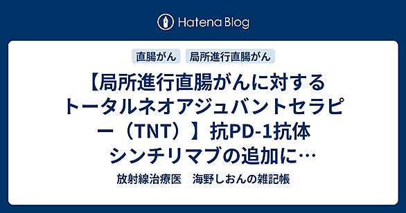 Neoadjuvant chemoradiation with or without PD-1 blockade in locally advanced rectal cancer: a randomized phase 2 trial.Yang Y, Pang K, Lin G, et al. Nat Med. 2025 Feb;31(2):449-456. DOI: 10.1038/s41591-024-03360-5. Epub 2025 Jan 6. PMID: 39762418. 【背景と目的】・放射線治療(RT)は免疫チェックポイント阻害薬(ICI)との併用により独特な抗腫瘍的相乗…