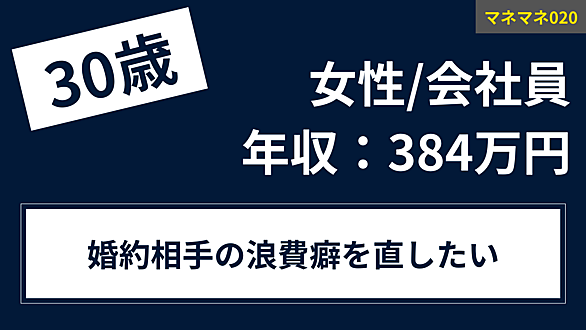 1.相談者情報 2.相談内容 3.家計情報 4.結論 5.キャッシュフロー表の解説 6.アドバイス 浪費癖の原因と対策 6-1. 原因① 『家計管理が全くできていない』 6-2. 原因② 『自分自身が情弱であることを理解していない』 6-3. 原因③ 『結婚後のライフプランと金額が肝づいていない』 6-4. まとめ 7.お問合せ 1.相談者情報 名前:マネマネ020様 家族構成:30歳/独身 職業:会社員 年収:384万円 住まい:賃貸 2.相談内容 こんにちは。30歳で会社員をしていて、婚約中の彼がいます。彼とは近々結婚する予定で、私の年収は1000万円で貯金は1000万円、彼は600万円で…