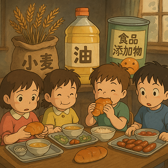 はじめに 学校給食は「子どもたちの健やかな成長を支えるもの」として始まりました。しかし、現実には輸入小麦や加工油、そして食品添加物に大きく依存しています。私たちが「安全」と信じている給食の裏側には、見過ごせない課題が潜んでいるのです。 給食の風景 輸入小麦の問題 日本の小麦自給率は約15%。給食のパンや麺のほとんどは輸入に頼っています。 アメリカやカナダから輸入される小麦は、収穫後に防カビ・防虫のためポストハーベスト農薬(収穫後農薬)が使われています。 EUでは禁止されている成分が、日本では基準値内で流通。つまり「基準の違い」でしかないのです。 monkusan.hatenablog.com …