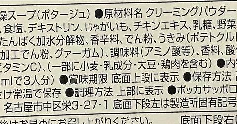 目下の目標は、「日々の買い物の中から「カラメル色素」、「亜硝酸ナトリウム」、「甘味料」、「植物油脂」の表示を避ける」なのです。で、買い物時には食品表示をチェックしています。 お、これは該当するかなと思い購入したのがこれ。 サッポロポッカ「ハッピースープ」シリーズ 食品表示はこちら。 近所のスーパーで買ったのですがえらい安く購入しました。 安かったのに、植物油脂も着色料も入ってない優等生……と思いきや! クリーミーパウダー こいつはどうも植物油脂の仲間だそうです。参照はWikipedia→ クリーミングパウダー - Wikipedia しかも、原材料名のトップに書かれているということは、一番配合…