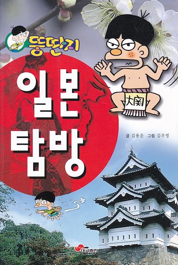 글 김용운, 그림 김우영 『뚱딴지 일본 탐방』(주)대교출판, 1996. 金容雲(1927〜2020)は韓国の数学者・作家で、日本の文化はすべて朝鮮半島から伝播したという韓国起源説の代表的な論者だった。数学教材以外の彼の著書はほとんどがトンデモ本で、『日本語は韓国語だ』『倭の大王は百済語で話す』などは言語学的根拠のない民間語源説の典型である。日本の「サムライ」の語源は「싸울아비(サウラビ、戦う男)」だというのも金容雲が広めたデマである。 本書はトゥンタンジという男の子が日本を探訪するという設定で、同じシリーズに『トゥンタンジの独島訪問記』があるが、こちらは画家は共通だが文章は송명호という…