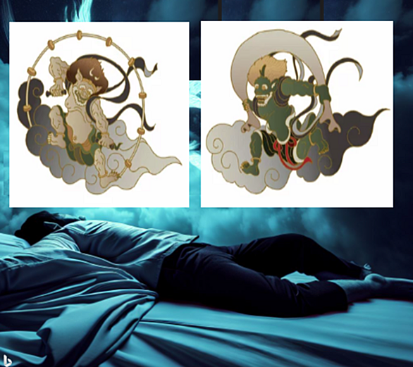 桃山時代から江戸時代にかけて活躍した絵師・俵屋宗達の代表作、国宝。正式には「風神雷神図屏風」と呼ぶ。建仁寺所蔵。右に風袋を握った 風神、左にバチを持った雷神が描かれていて、見たことのない人は少ないであろう。→風神雷神図屏風