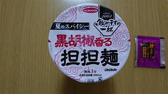 エースコック タテ型飲み干す一杯 夏のスパイシー黒胡椒香る担担麺 を 実食! 湯を入れて待つ3分 飲み干したくなるスープの素を投入 スープはポークベースのみそ味に練りごま・黒胡椒・ニンニクを効かせた担々スープ 黒胡椒の香りと刺激、ニンニクもシッカリ効いているパンチのある仕上がり 黒胡椒もニンニクも存在感はありますが、強すぎず弱すぎずの絶妙なバランス 辛さレベルは5段階で2の小辛レベル 麺は油揚げのストレート中細麺 芯付近に弾力が感じられる歯切れのよいの麺 具材はごま、にんにく、ねぎ、唐辛子 具材の存在感はほぼありませんが、ごまの香ばしさが良いアクセント 途中辛さ&シビれを追加! 〆はモチロン追…
