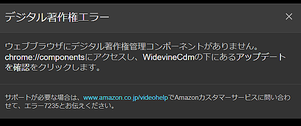 Chromeでプライムビデオとかが再生出来ない chrome://componentsにアクセス 項目はあったけど 未更新のままで、特に何も起こらない chrome 設定>プライバシー>保護されたコンテンツ も許可されている [evernote:2c3c3ff1f3d9ff8fb974abd91ca5fdc4 アップロード中] #GOOGLECHROME#詳細設定#WIDEVINECDM#プライムビデオ#見られない#COMPONENTS