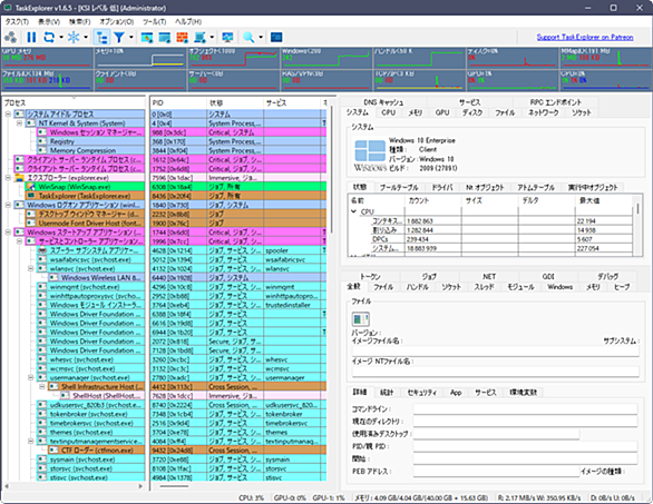 TaskExplorer v1.6.5 日本語言語ファイル タスクエクスプローラーは、実行中のアプリケーションを監視するだけでなく、アプリケーションの動作に関する詳細な情報を提供するために設計された強力なタスク管理ツールです。そのユーザーインターフェースはスピードと効率性を重視し、最小限の操作でプロセスに関するリアルタイムデータを提供します。複数のウィンドウやサブウィンドウを必要とせず、タスクエクスプローラーは関連情報をアクセスしやすいパネルに表示します。プロセスを選択すると、画面下部に詳細情報が表示され、矢印キーを使ってシームレスにデータ内を移動できます。動的なデータ更新により、ユーザーはリ…