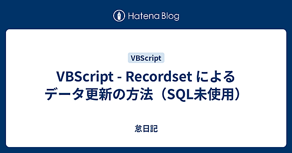 データの更新には一般的にINSERT文、UPDATE文、DELETE文といった SQL を使う。 しかし ADO の Recordset はデータの更新機能を持っているので、SQL を使わずにデータの更新ができる。 データの追加方法 AddNew でレコードセットにレコードを追加し、Update でテーブルに反映する。 Dim rst Set rst = CreateObject("ADODB.Recordset") 'テーブル名を指定してレコードセットを開く rst.Open "DEPT", _ "Provider=OraOLEDB.Oracle;User ID=scott;Passwo…