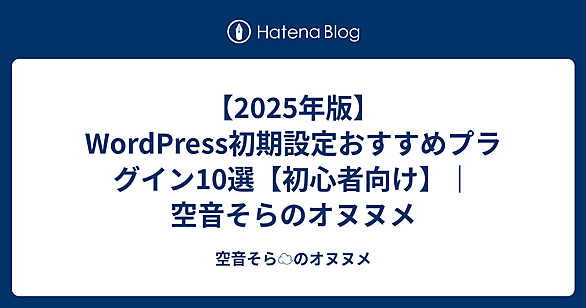 こんにちは、空音そらです🌤️前回の記事 sorane-sora.hatenablog.jp では、ブログ開設までの流れを紹介しました。 今回はその続き。「WordPressを入れた後、最初に入れるべきプラグイン」を10個に厳選して紹介します💡 🌱 そもそもプラグインとは? プラグインとは、WordPressに機能を追加できる「アプリ」のようなものです。 たとえば、 セキュリティ強化 SEO対策 画像軽量化などが、クリック一つでできるようになります。 でも… 「どれを入れればいいのかわからない💦」 そんな初心者の方のために、“入れすぎず、最低限で強い”構成を紹介します👇 ✅ WordPress初…